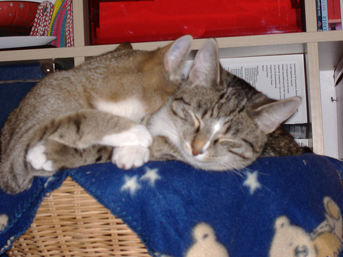 Paulchen und Tiger zogen im Juni 2007 bei mir ein. Geboren wurden sie im April 2007. Beide wurden wild geboren und im Alter von ein paar Wochen von ihrer Mutter zu einer Esso Tankstelle gebracht. Dort wurden sie von den Besitzern versorgt. Dank einer Klassenkameradin sind sie später dann zu mir gekommen. Fotos von den beiden: http://www.flickr.com/photos/62561066@N00/